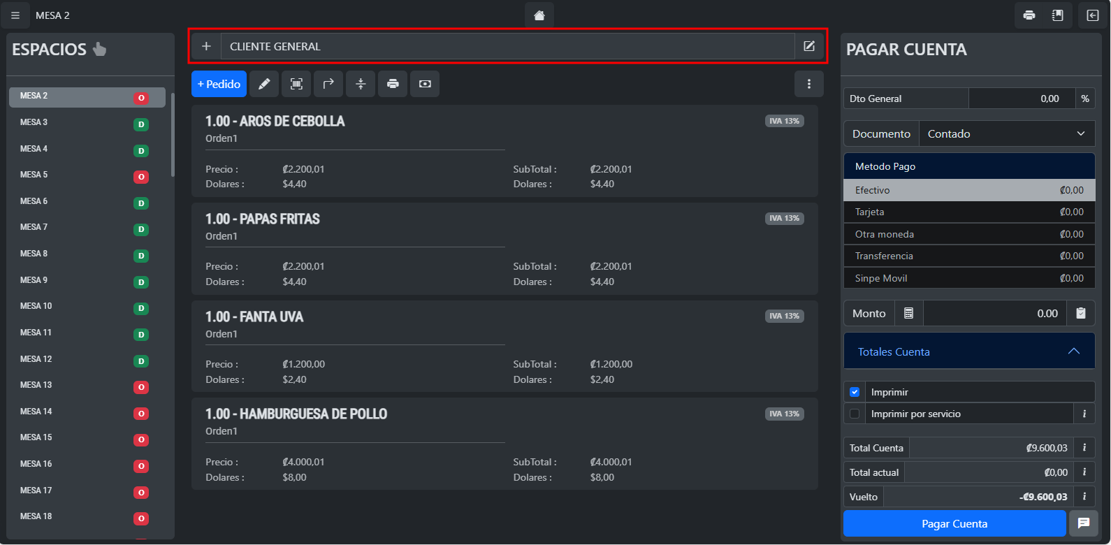 Cuando estas tomando un pedido, arriba de los artículos habrá una barra que indica con qué cliente estás trabajando actualmente.