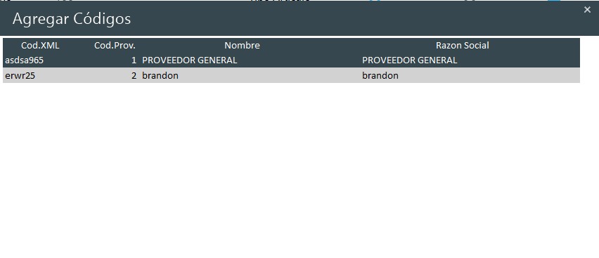 • Cod. XML proveedor: se muestran los códigos que están ligados al proveedor atreves del XML.