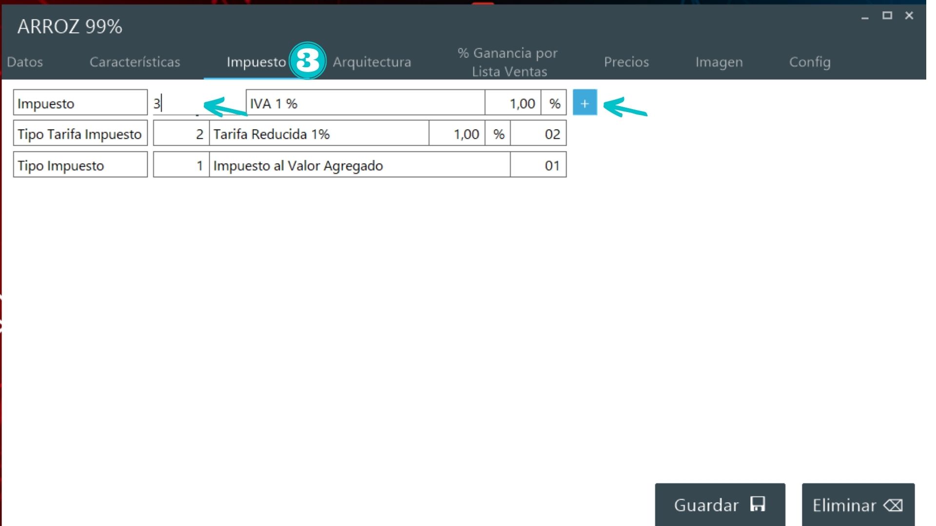 En esta pestaña se agrega el impuesto que va a cobrar el articulo.