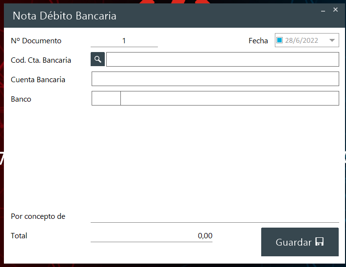 Cod. Cta. Bancaria: seleccione la cuenta bancaria a la que pertenece la nota.