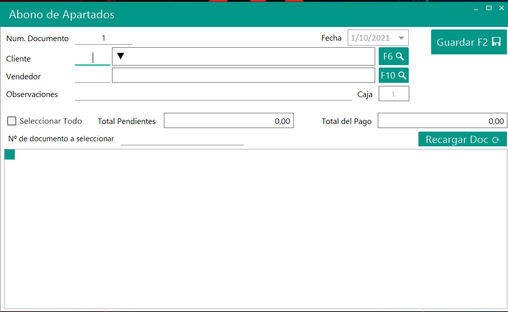 RECARGAR DOC: Este botón nos brinda la facilidad de actualizar las facturas e apartados que se han realizado en el trascurso de que se abrió la venta de abonos de apartados.