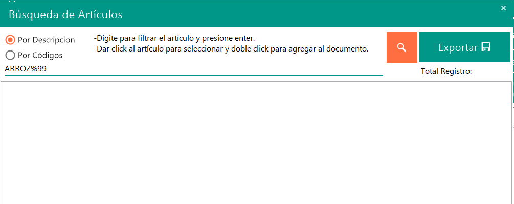 -Dar click al articulo para seleccionar y doble click para agregar al documento.