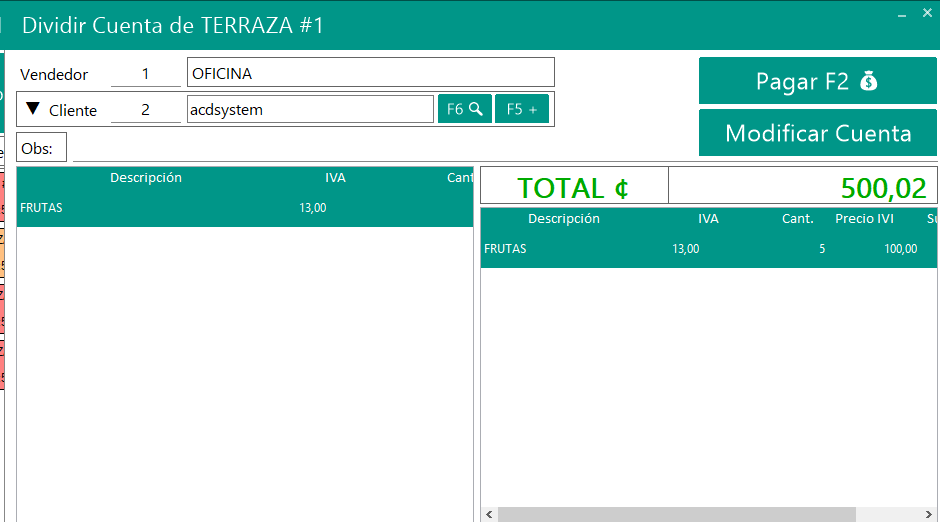 • Pagar cuenta:  cuenta completa (un solo cliente cancela todo el pedido)