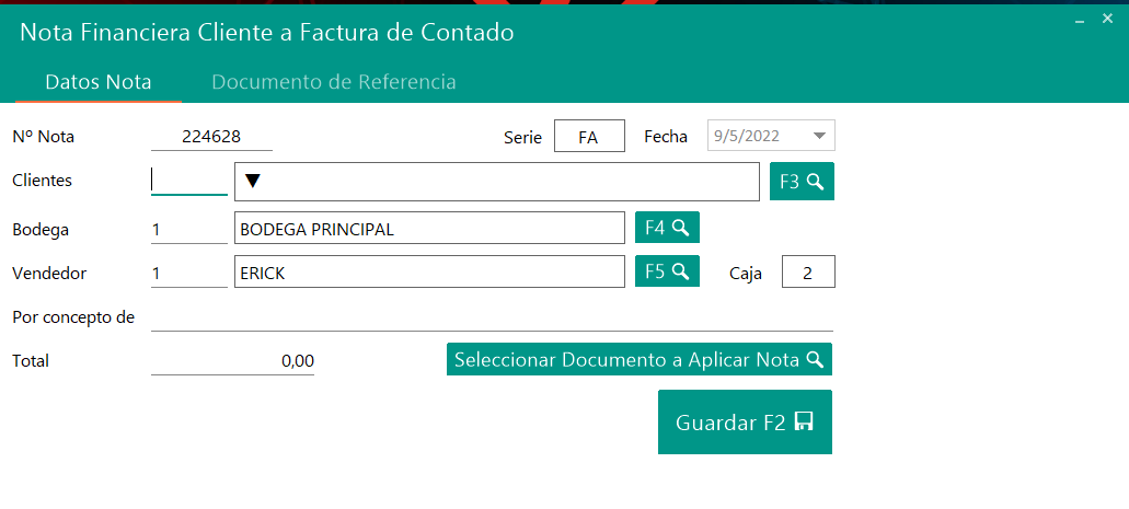 El No. Nota, Serie y Fecha se cargan de forma automática en el sistema, está información no se puede modificar.
