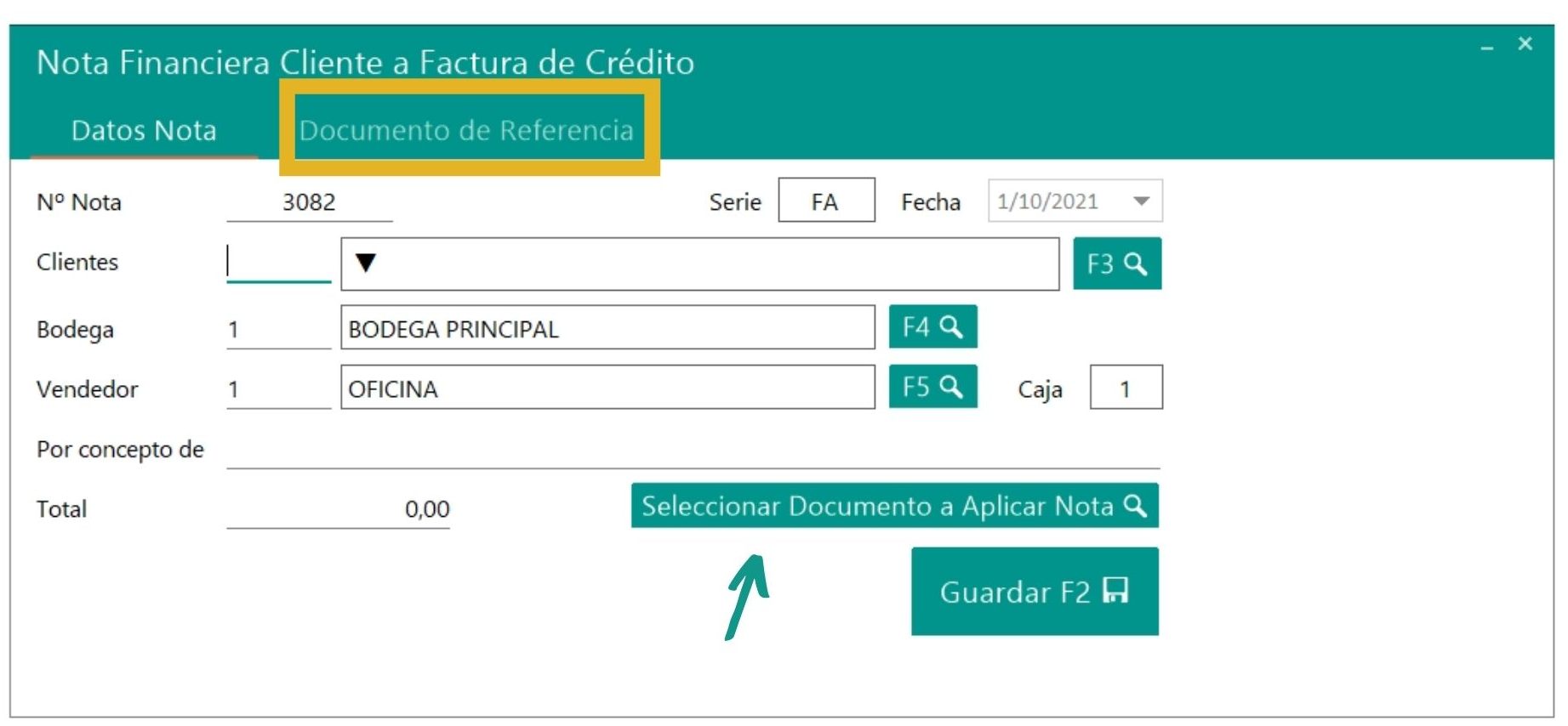Seleccionar Documento para aplicar Nota