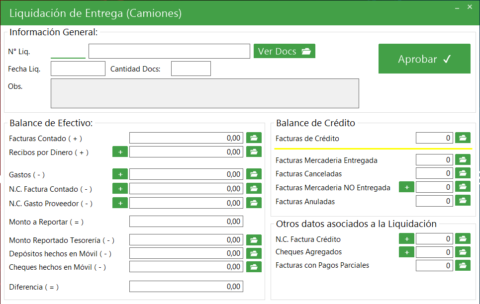 - Diferencia: Al monto TOTAL se le resta el monto reportado en tesorería, los depósitos y cheques realizados en el móvil.