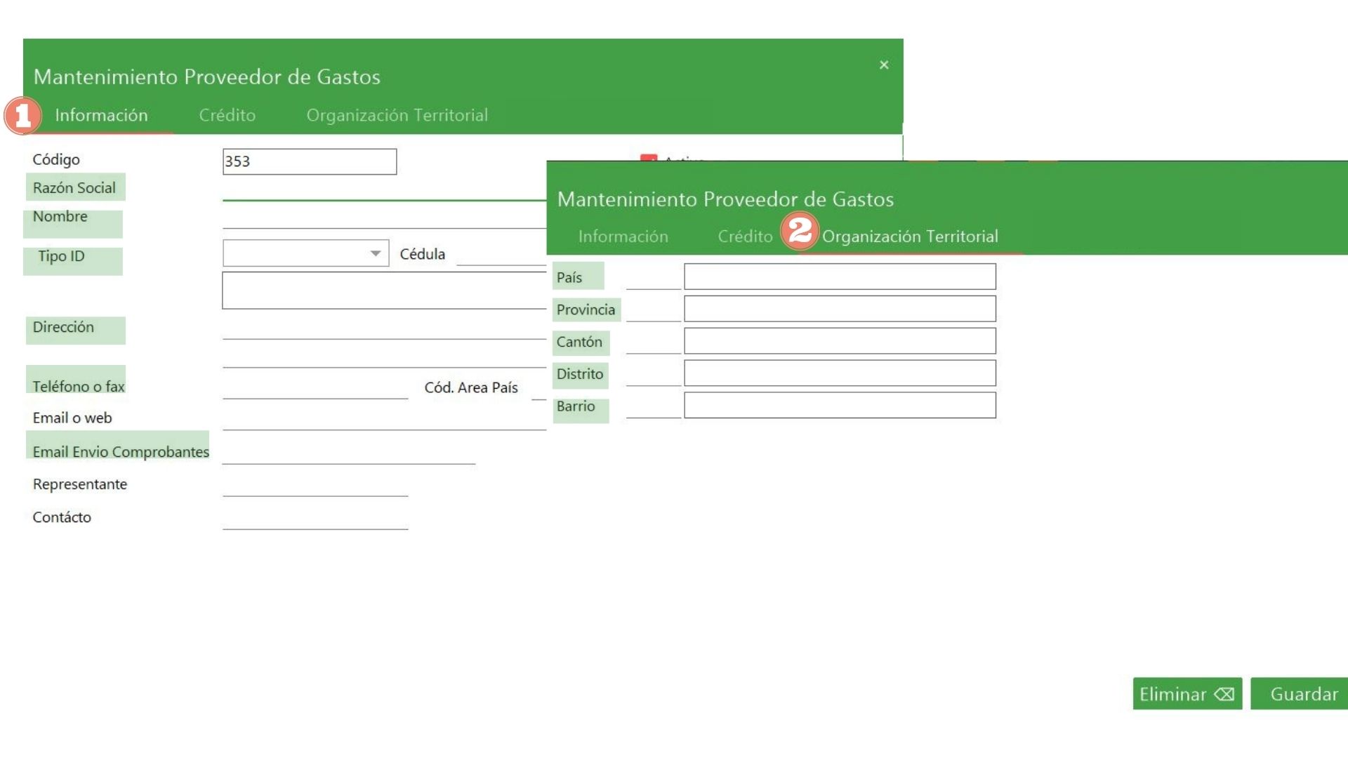 Proveedor de gasto simplificado: para crear los proveedores simplificados es necesario registrar los datos de facturación electrónica como: