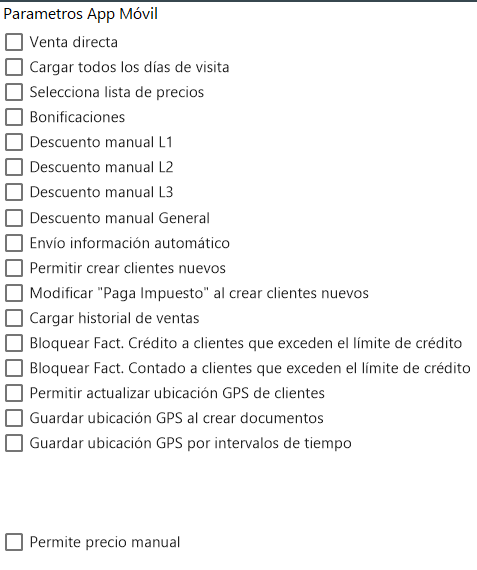 Permitir crear clientes nuevos: permiso para que el vendedor pueda crear clientes nuevos en la app móvil.