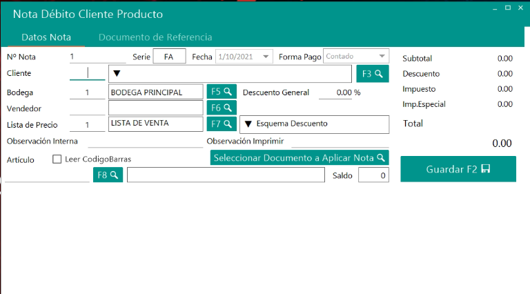 Nota de Débito por Producto: