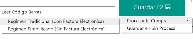 - Procesar la compra como Regimen Tradicional (con factura electrónica): esta opción se elige para las facturas que llegan al correo de la empresa proveedora por medio de XML, el sistema realiza el registro del documento pero no vuelve a enviarla Hacienda, porque esta ya se encuentra en ella.